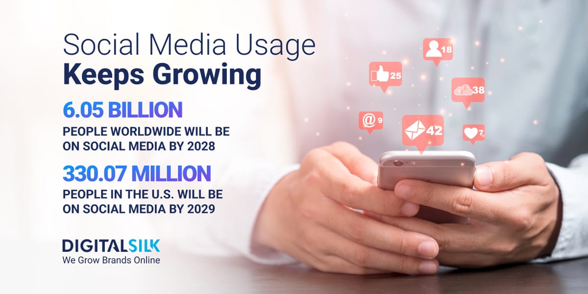 - It’s estimated that the number of social media users worldwide will reach 6.05 billion by 2028.
